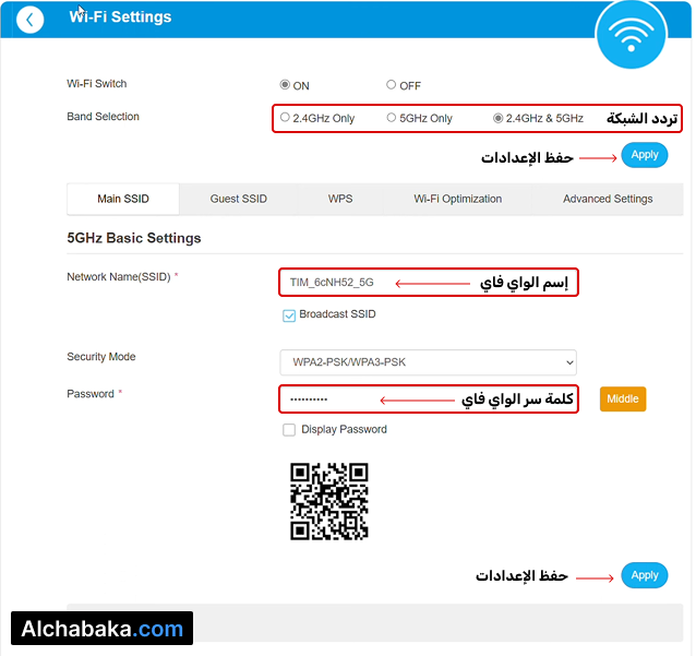 - في حقل Password أكتب الباسوورد الجديد ثم إضغط على Apply لحفظ الإعدادات